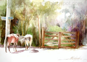 ReplyDeleteYour watercolor is just stunning! I like the composition, light, color,animals and green areas. Fabulous, Fabio!